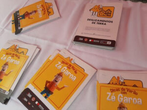 Durante a ação educativa, foram distribuídas cartilhas do Zé Garoa com dicas de prevenção de enchentes, alagamentos, deslizamentos e outros riscos trazidos por chuvas intensas e ventos fortes.