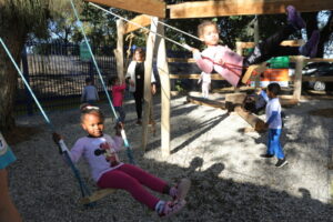 O parque é equipado com tirolesa, balanços, cordas de escalada, bancos e mesas, todos feitos com troncos de árvores oriundos da não degradação do meio ambiente e que caíram sem intervenção humana.