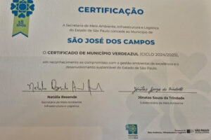 São José dos Campos recebeu nesta terça-feira (9) o certificado do Programa Município VerdeAzul, com 93 pontos conquistados, resultado que coloca a cidade como a maior pontuação entre os municípios do interior do Estado com mais de 500 mil habitantes.