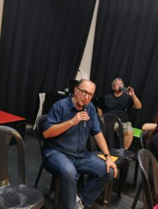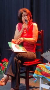 “Ontem à noite mediamos mais uma Ciranda de Poesia na Cia Cultural Bola de Meia. Lançamento do livro “A Casa Melancia” de nossa querida amiga Teresa Cristina Bendini – A Casa Melancia é uma história leve, brincante que joga luz nas memórias e traz sons e sabores que transformam a leitura numa experiência sensorial. A ilustração é belíssima e retrata a casa como um nascedouro de lembranças, espaço vivo onde pulsa os afetos mais felizes ou não. Uma obra primorosa que emociona gente grande e desperta a criança que em nós, ainda habita. Uma noite festiva e afável com várias pessoas de nosso bem querer mais profundo e pronto.