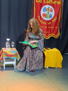 “Deus não vende o sol, nem o mar, nem as estrelas, não existe cartão de débito ou crédito para a compra do que é de graça, O que é de graça é Graça! Ontem o que não se compra com dinheiro estava lá, Dádiva pura! Amigos feitos de sol, de flores, de mar. Minha vocação não é comerciável, meu talento para a escrita vem da mesma substância das estrelas, do sol, da flor, do pássaro, do mar. Meu livro não é meu. Meu é algo que nega a minha natureza- dádiva. Ontem tive que vender meus livros e isso me entristeceu. Foi como vender o sol, a lua e as estrelas e tudo que nos faz ser sol, lua, estrelas, flor, para o outro. Então peço desculpas aos meus amigos. Que lá se doaram inteiros, sem negociar sorrisos ou abraços. Obrigada Cia Bola De Meia!” (Teresa Cristina Bendini).