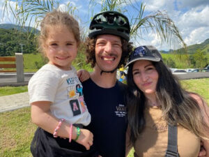 Atleta de BMX Cauan Madona prestigiou a abertura da pista junto da esposa, Flávia e a filha|Foto: PMSJC.