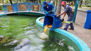 O serviço de larvicida abrange toda a cidade e é executado em 80 locais, sempre em córregos, lagos e rios, incluindo alguns de difícil acesso. A aplicação dos produtos atinge as larvas e ajuda a combater a proliferação do mosquito Aedes aegypti, reforçando as ações de prevenção contra a dengue, zika e chikungunya.