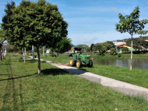 A roçada em áreas públicas tem sido intensificada no verão por conta das chuvas e altas temperaturas, que contribuem para que o mato cresça mais rápido, exigindo assim mais serviços de manutenção.