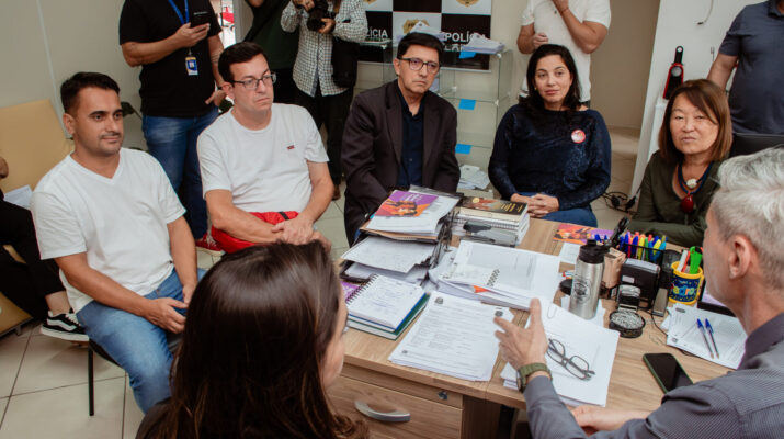 LEGENDA: Vereadores de São José dos Campos se reúnem com delegados da Delegacia de Defesa da Mulher (DDM). FOTOS: Cleverson Nunes/CMSJC